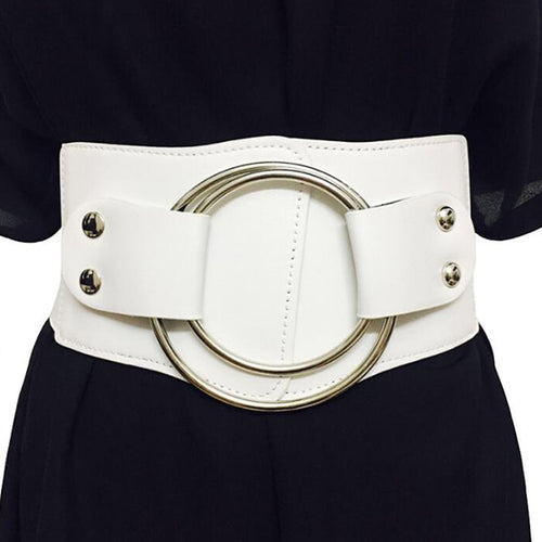 Lady Retro Wide Waist Belts Stretchy Elastic Corset Waistband Hollow Metal Big O-ring Women's Belt For Dress Jacket