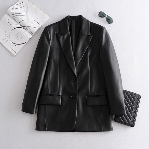 2021 Long PU Faux Leather Blazers Women Leather Jacket Coat Brand New Women's Jackets Outerwear Ladies Coats Female Leather Suit