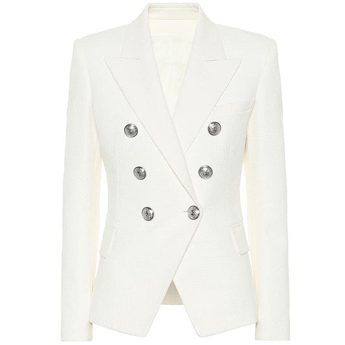 HIGH STREET 2021 Classic Designer Blazer Women's Double Breasted Metal Lion Silver Buttons Pique Blazer Jacket