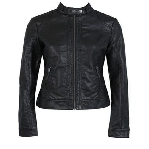 2021 Leather Jacket Women Zippers Spring Autumn Women's PU Leather Jacket Mandarin Collar Red Motor Biker Coat Female Oversized