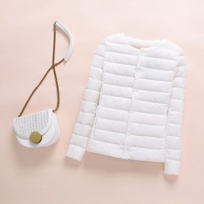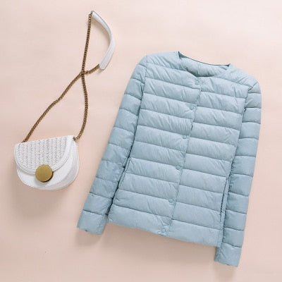 2020 New Winter Women Down Coat Ultralight Collarless Duck Down Jacket Portable Female Padded Parkas O-Neck Puffer Overcoat